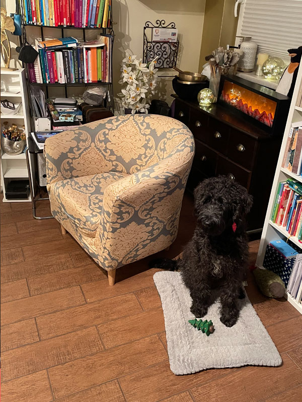 Und da darf natürlich auch mein Therapiebegleithund und treue Fellnase „SCHROEDER“ nicht fehlen.